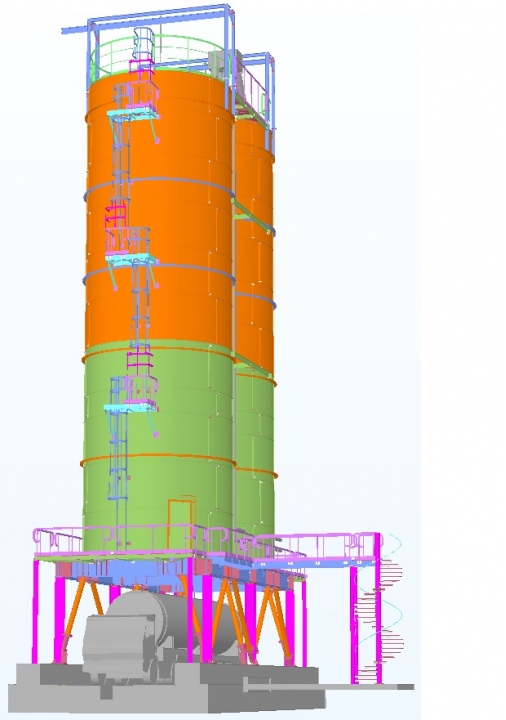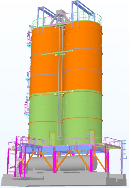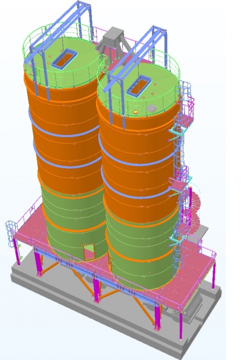 Strukturell analyse og prosjektering av to 400 toner, siloer for varm aske, basert på egen støtte stålramme struktur med mulig passering under for materiell henting.